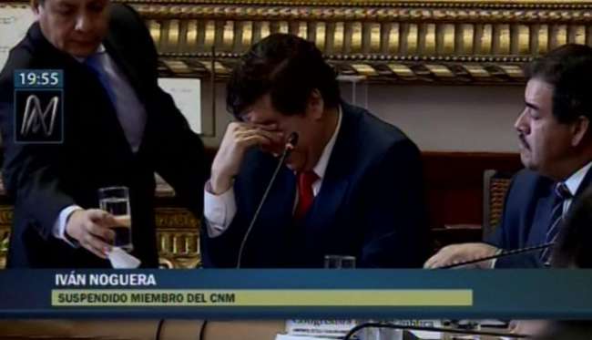 El exconsejero del desactivado Consejo Nacional de la Magistratura, Iván Noguera Ramos, lloró al afirmar que existen cinco falsedades en el informe de la Subcomisión de Acusaciones Constitucionales sustentado por el congresista Oracio Pacori Mamani.