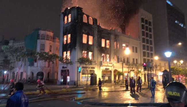 INCENDIO DESAPARECE MONUMENTO. la madrugada del sábado 27 de octubre, el edificio Giacoletti, el primero en ser construido en la Plaza San Martín, quedó destruido por el fuego. Un incendio catalogado como código 5 acabó con el monumento patrimonial del Centro Histórico de Lima.