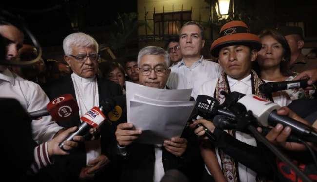 Tras más de ocho horas de reunión en la sede de la Conferencia Episcopal Peruana (CEP), los representantes del Ejecutivo, dirigentes de la comunidad campesina de Fuerabamba y representantes de la empresa minera MMG, responsable del proyecto minero Las Bambas, EL SÁBADO 6 alcanzaron diversos acuerdos que busca poner fin al conflicto social en la zona. (FOTO: EL COMERCIO)