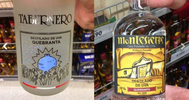En un recorrido por supermercados en Chile, se encontró que las marcas peruanas se comercializan como destilados de uva y a precios que rondan el equivalente a 15 dólares.