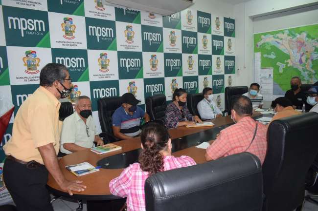 El alcalde Tedy del Águila Gronerth en reunión con la dirigencia del FRECIDES, señaló su malestar recurrente que realiza a EMAPA San Martín, ahora está intervenida por OTASS.