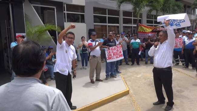 El presidente del Frente Cívico de Defensa de los Intereses (FRECIDES) de San Martín, llegó hasta la Municipalidad Provincial de San Martín para brindar respaldo a los trabajadores sindicalizados que ayer acataron un paro de 24 horas exigiendo mejoras salariales y cumplimiento del Pacto Colectivo.