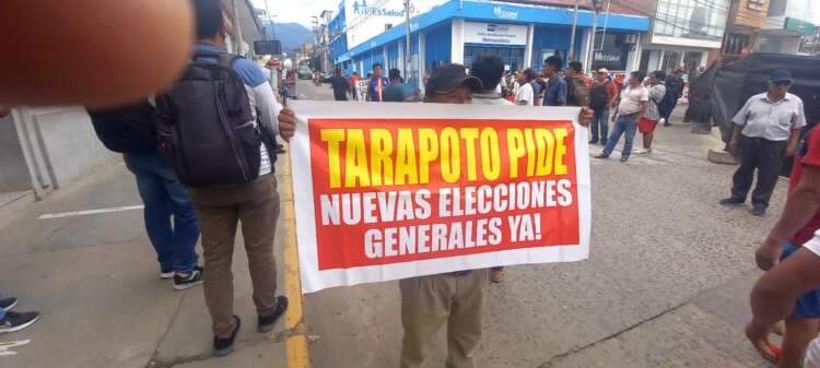 Precisamente un buen grupo de manifestantes desde las 5 de la tarde, recorrió las principales calles de Tarapoto, haciendo sentir su voz de protesta, siendo resguardados por la Policía Nacional del Perú.