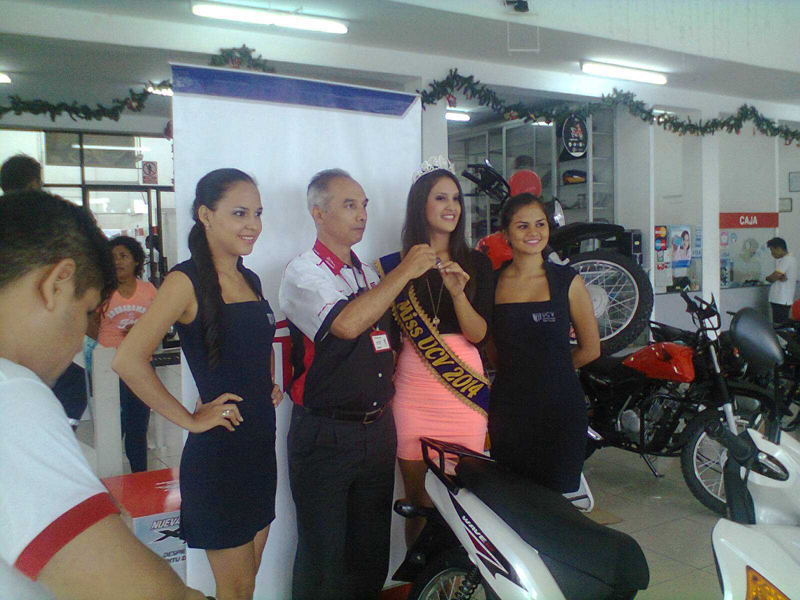 BonnyTorres Mego, fue la ganadora y coronada como “Miss Aniversario 2014 UCV Tarapoto” ella es estudiante del segundo ciclo de la carrera de Ingeniería Ambiental y con sus diecisiete años de edad y gracias al titulo de belleza obtenido por decisión del jurado calificador se hizo acreedora de esta motocicleta de alto rendimiento y de duración con la garantía de la marca Honda y como parte de los premios a los que se hizo acreedora.