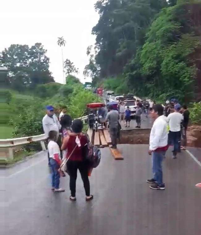 El corte de la vía se produjo la noche del sábado a causa de las intensas lluvias que azotan la zona, colapsaron alcantarillas, badenes y puentes de las quebradas afluentes del Río Caynarachi.