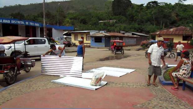 Picota. El distrito de Tres Unidos de la provincia de Picota soportó fuertes vientos dejando sin techo a varias viviendas del centro de esa localidad, personal del Centro de Operaciones de Emergencia Regional (COER) llegaron a brindar apoyo a las familias afectadas por el temporal de lluvia.