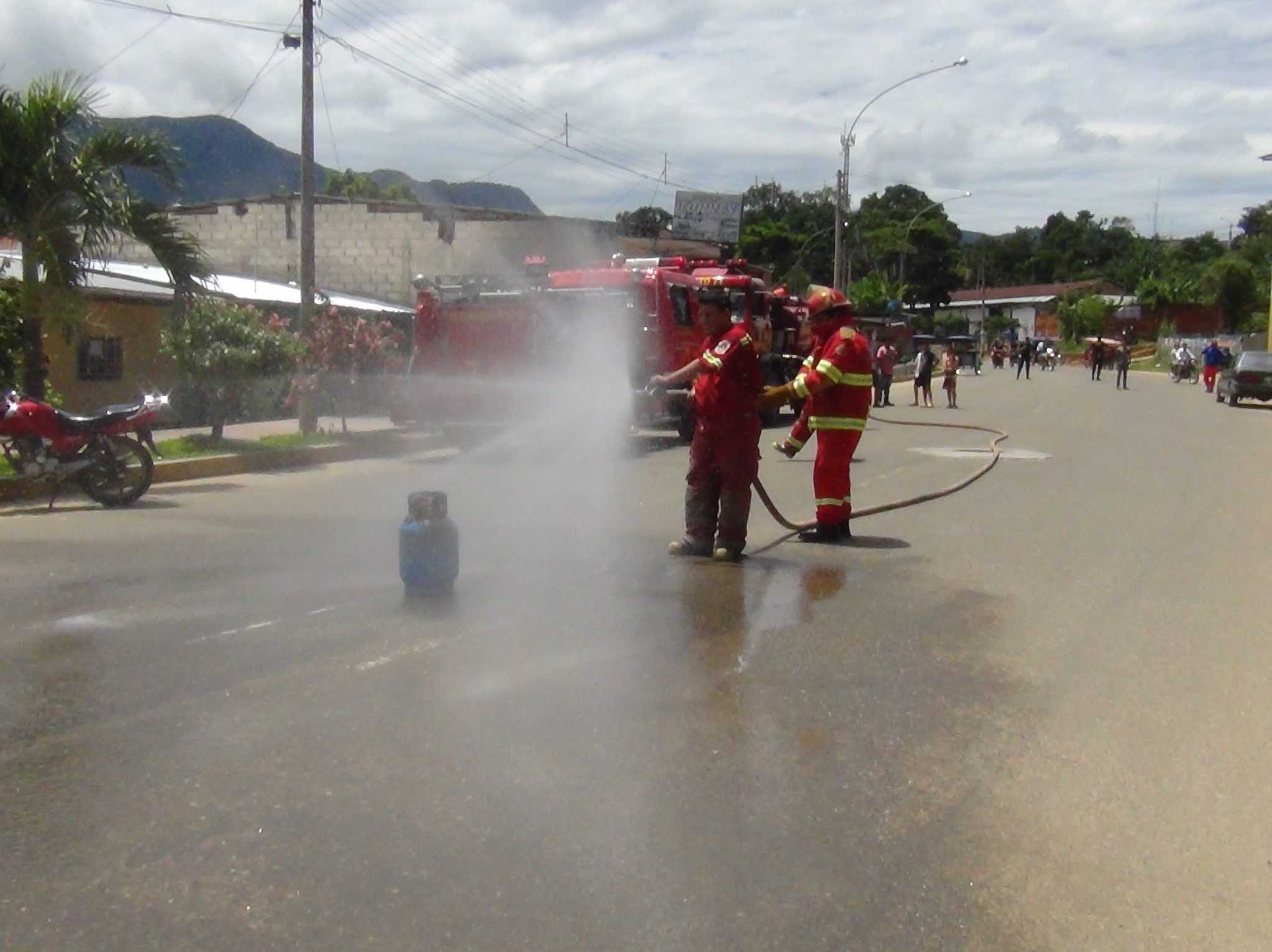 Posteriormente los hombres de rojo enfriaron al balón de gas y junto con la propietaria fueron a la tienda de donde compró; los bomberos indicaron que los balones de gas son sólo repintados y no se encuentran en buenas condiciones.