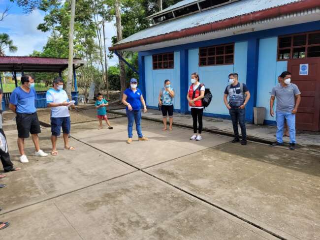 En esa comitiva estuvo presente el especialista de Infraestructura de la UGEL, Arthur Dávila Romero, quien sostuvo reuniones con los docentes y padres de familias a fin de coordinar acciones inmediatas para el reinicio de las clases presenciales tanto en la Institución Educativa Arístides del Águila Ríos del Distrito de Papaplaya, así mismo en la Institución Educativa Víctor Raúl Haya de la Torre en el Distrito de Porvenir – Pelejo.