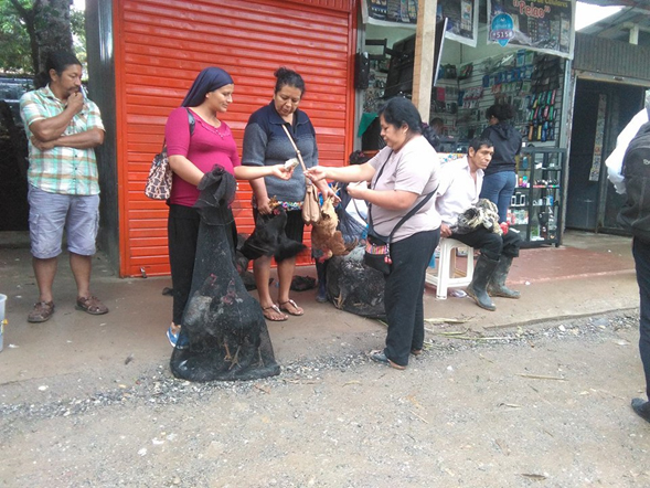 En breve recorrido, realizado ayer miércoles pudimos comprobar la aglomeración de gente interesada en comprar las aves de corral y garantizar la preparación de este plato de nuestra Amazonía.