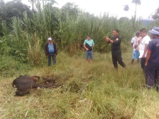 Naranjillo. Una rápida acción de las autoridades pudo evitar el sacrificio y comercialización de un ganado vacuno a orillas del río Naranjillo en el centro poblado de Naranjillo. Efectivos de la PNP junto al subprefecto Roque B intervinieron logrando identificar el estado crítico y peligroso en que se encontraba la vaca al tener la enfermedad de la rabia bobina, según precisó el médico veterinario Yolbi Champoñan por lo que se procedió a incautar el animal y someterlo a una incineración. Aún no se ha revelado la procedencia del animal ni las personas que intentaron vender esta carne contaminada que, la oportuna intervención de las autoridades, un tremendo daño evitó. (Carlos Alarcón)