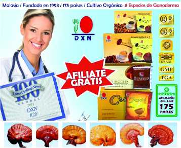 DXN, fundada en Malasia en 1993, es la empresa creadora del concepto de mezclar productos de consumo masivo (CAFÉ, TE, CHOCOLATE) con extracto de las 6 variedades más potentes de este Hongo Rojo (GANODERMA LUCIDUM).