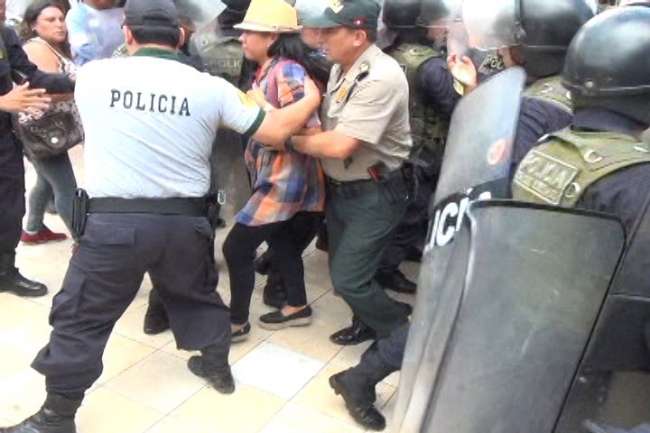 Después de casi 10 minutos de iniciado la trifulca, agentes de la Unidad de Servicios Especiales de La Policía Nacional lograron rescatar a la renunciante gerente de la turba y de inmediato fue conducida a la dependencia policial, luego de ello luego subió a una camioneta con rumbo desconocido.