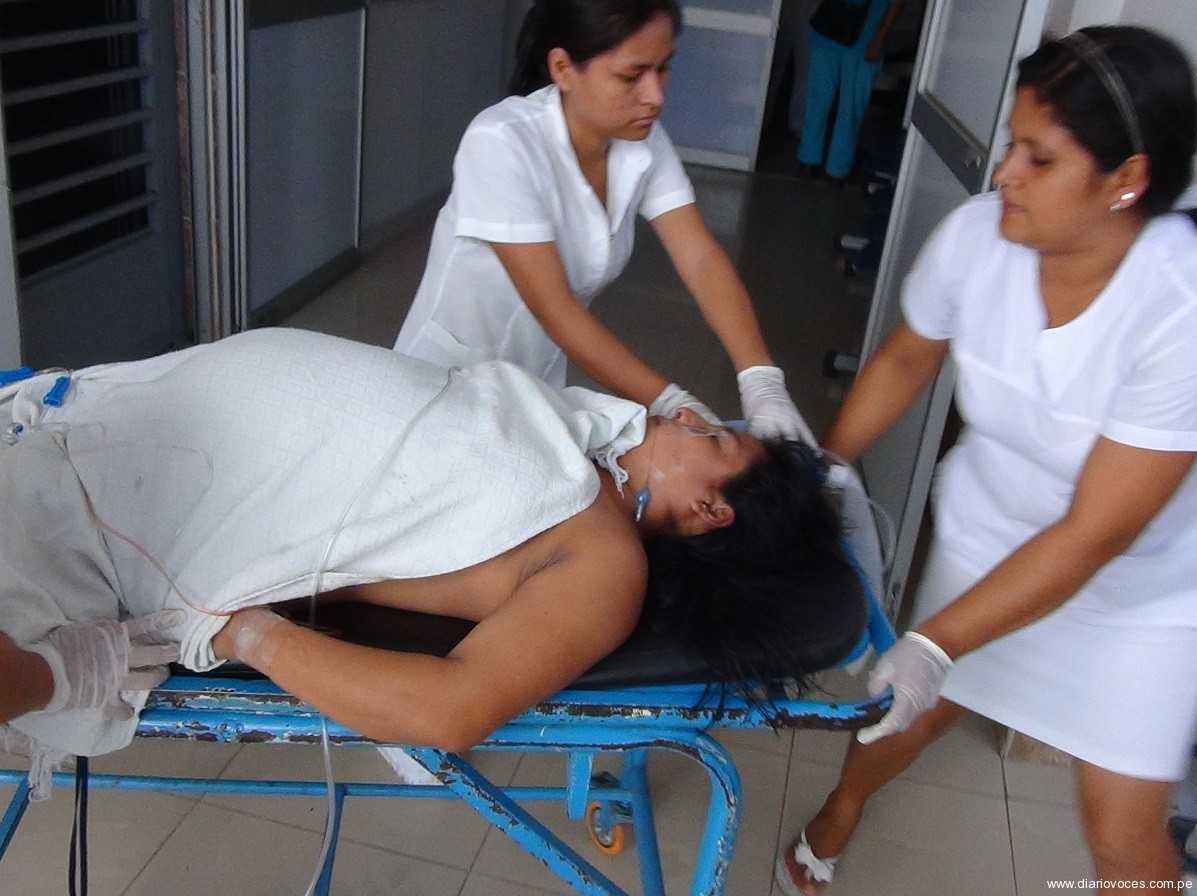 En una ambulancia del hospital de Saposoa, llegó en coma a Tarapoto, una mujer con ocho meses de gestación, que ayer a las once de la mañana junto a su esposo sufrió un violento accidente de tránsito cerca del distrito de Piscoyacu, médicos de la clínica San Camilo la intervinieron quirúrgicamente de emergencia a fin practicarle una cesárea para evitar complicaciones con su bebé.