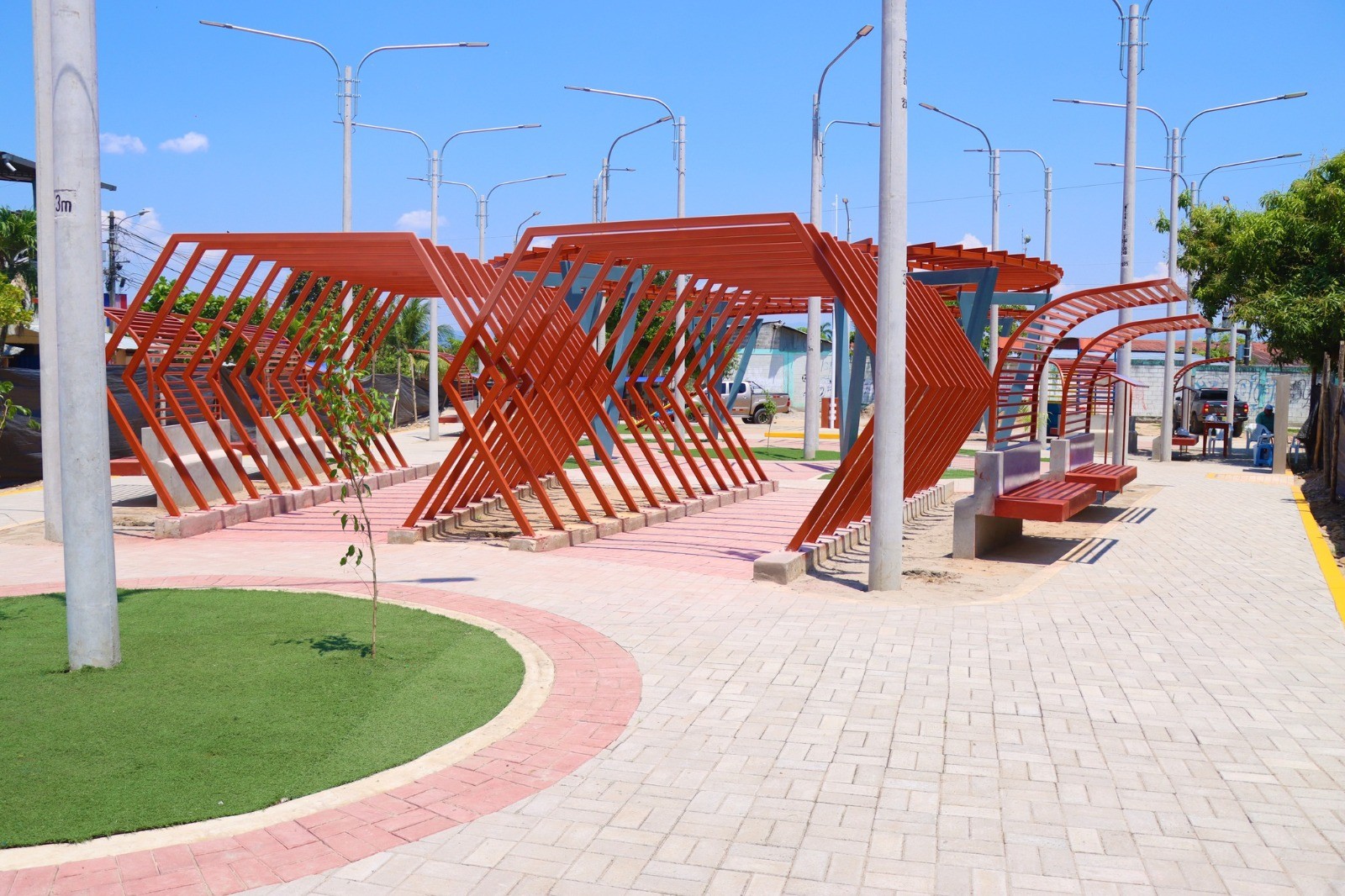 El proyecto incluyó la construcción de 631.2 m² de piso adoquín de concreto, 10 bancas de concreto armado con techo metálico emparrillado, 196.68 m² de grass sintético, 26 plantas ornamentales, dos túneles metálicos iluminados con barras led en diseño de hexágonos, seis puntos ecológicos, un techo emparrillado semicircular, otro circular, y la instalación de 20 postes de concreto con luminarias led tipo pastoral.