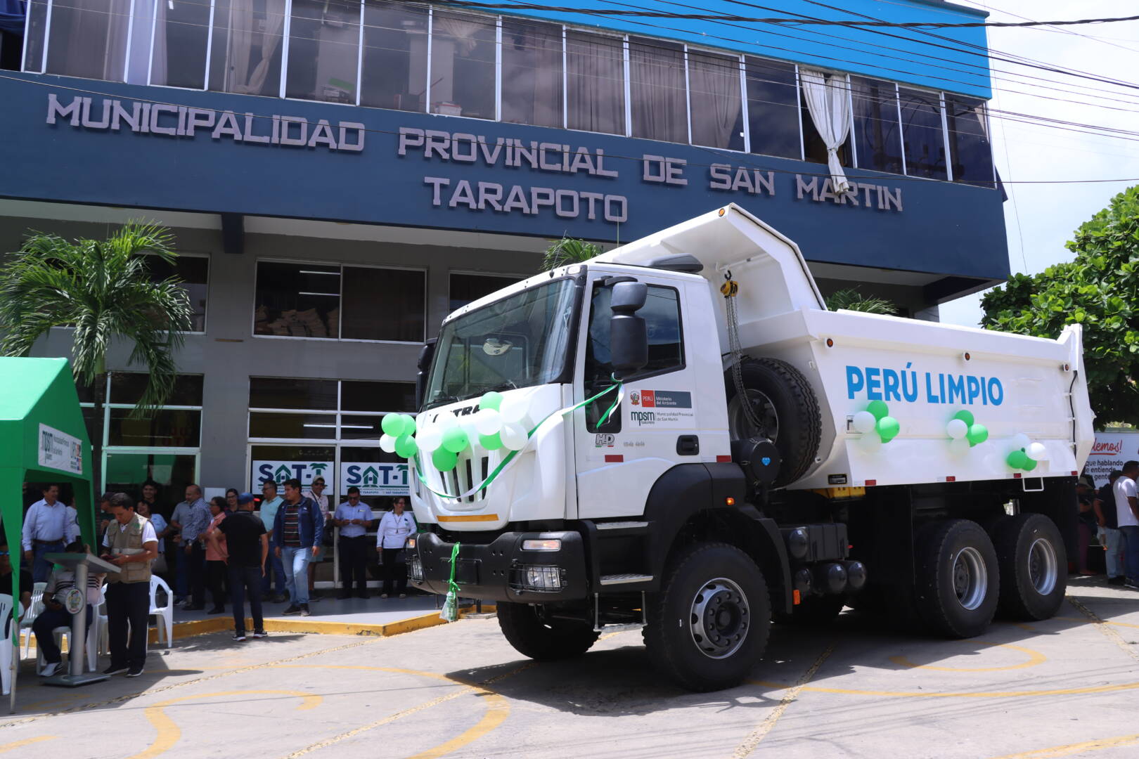 La alcaldesa de la provincia de San Martín, Lluni Perea Pinedo, recepcionó y presentó dos vehículos (volquete de 15 m3 y minicargador), entregados por el Ministerio de Ambiente en mérito a un convenio efectuado con la Municipalidad Provincial de San Martín.