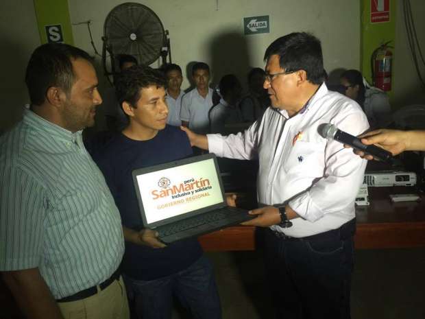 En ceremonia realizada ante una numerosa concurrencia de jóvenes en el auditorio de la Comisión de Usuarios Perla del Huallaga, entregó equipo de cómputo, cámaras fotográficas y filmadora, impresora, proyector multimedia, mesas, sillas y otros para ser utilizados por la juventud de esta provincia.