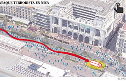 En Niza, el terror vuelve a golpear a Francia, objetivo prioritario del yihadismo. Decenas de personas —84, según el último balance provisional del Gobierno francés— han muerto atropelladas por un camión lanzado contra una multitud durante los festejos del 14 de julio, fiesta nacional francesa, en el Paseo de los Ingleses de Niza. Hay 202 heridos, 52 de ellos en estado crítico, según ha revelado la fiscalía francesa. En una comparecencia esta madrugada, el presidente francés, François Hollande, ha señalado que “no se puede negar el carácter terrorista del ataque”. El Ministerio del Interior ha identificado al atacante como un francés de origen tunecino de 31 años, conductor de camiones. Ningún grupo se ha atribuido la autoría del ataque de Niza.