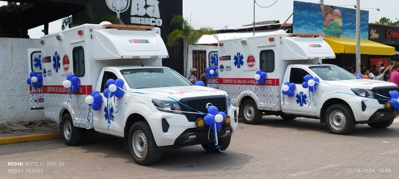 Las ambulancias destinadas para los centros de salud de Balsapuerto y Aclas Aguamiro fueron presentadas y bendecidas este lunes en acto público en la Plaza Mayor de la ciudad de Yurimaguas.