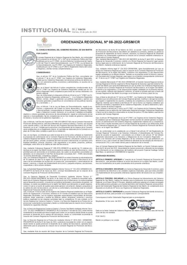 Gobierno Regional: Ordenanzas Regional N°08, N°09, N°11, N°12