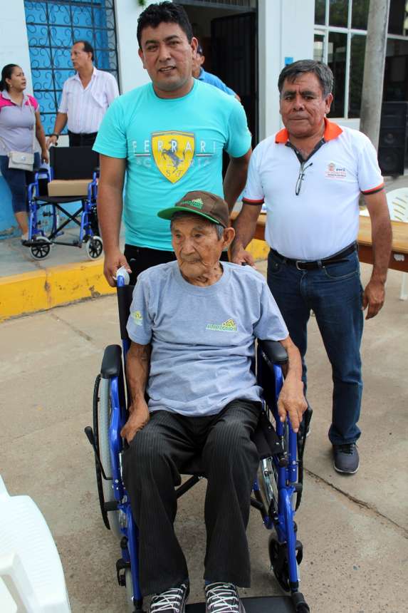 Los beneficiarios de las sillas de ruedas son: José Moisés Núñez Leyva (caserío Paraíso), Oliver Segundo Ríos Ríos, Enerma Alegría Cometivos, Defilio Tapullima Tuanama, Mercedes Díaz Guevara, Emelina Ríos Cárdenas y Teobaldo Arias Gonzales (Saposoa), Mauro Mendoza Aguirre (Tingo de Saposoa) y Bárbara Lozano Ruiz (El Eslabón). (Carlos Velásquez Sánchez)