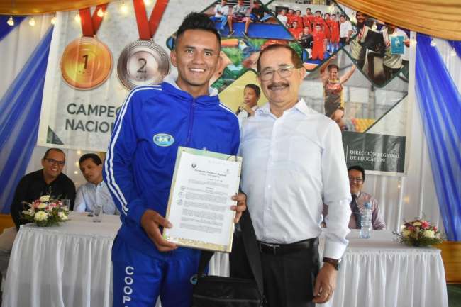 En emotiva ceremonia realizada en el Centro Turístico Milán el día de ayer lunes 23 de diciembre del año en curso, ubicado en la capital de la región San Martín – Moyobamba, los campeones de las diferentes disciplinas que disputaron las olimpiadas y juegos deportivos en d Alumnos sanmartinenses obtuvieron primer y segundo puesto, medallas de oro y plata respectivamente en la etapa nacional. iferentes puntos del país, recibieron medallas y trofeos como reconocimiento a su espíritu deportivo y entrega en esta importante cita escolar, contando con la presencia del gobernador regional Pedro Bogarín Vargas, la vice gobernadora Nohemí Aguilar Puerta, el director regional de EducaciónJuan Orlando Vargas Rojas, el director de gestión pedagógica Wilson Ricardo Quevedo Ortiz, entre otras autoridades.