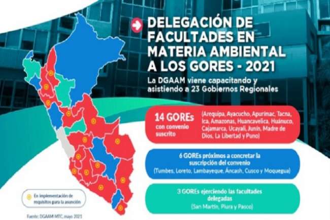 El Ministerio de Transportes y Comunicaciones delegó facultades ambientales al 93% de los gobiernos regionales que ahora podrán otorgar la Certificación Ambiental a los proyectos de transporte de categoría I, es decir, la Declaración de Impacto Ambiental, así como la conformidad a la Ficha Técnica Socioambiental.