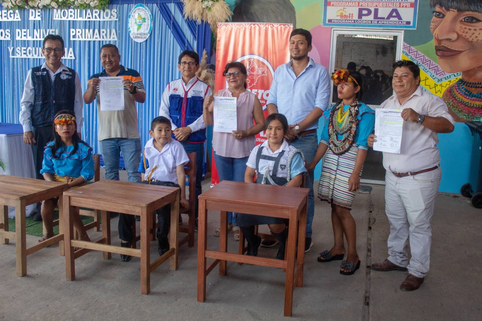 En las instalaciones de la Unidad de Gestión Educativa Local de Alto Amazonas (UGELAA), en representación del gobernador, el gerente de la Subregión de Alto Amazonas, Ing. Jhony Escudero, hizo entrega de un primer lote de 820 mesas e igual número de sillas a 141 II.E. focalizadas en su mayoría del ámbito rural.