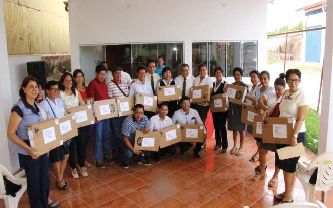 Yurimaguas. En ceremonia pública desarrollada en la misma institución, el director de la Unidad de Gestión Educativa Local de Alto Amazonas (UGELAA), Profesor Julio Meléndez Padilla, hizo entrega ayer, 24 computadoras portátiles (Laptop), a igual número de profesores de diferentes instituciones educativas, por su contribución en la evaluación censal de estudiantes (ECE) y excelencia educativa 2017, reflejada en los niveles de aprendizaje de los alumnos, que mejoraron su rendimiento en la ECE 2015.