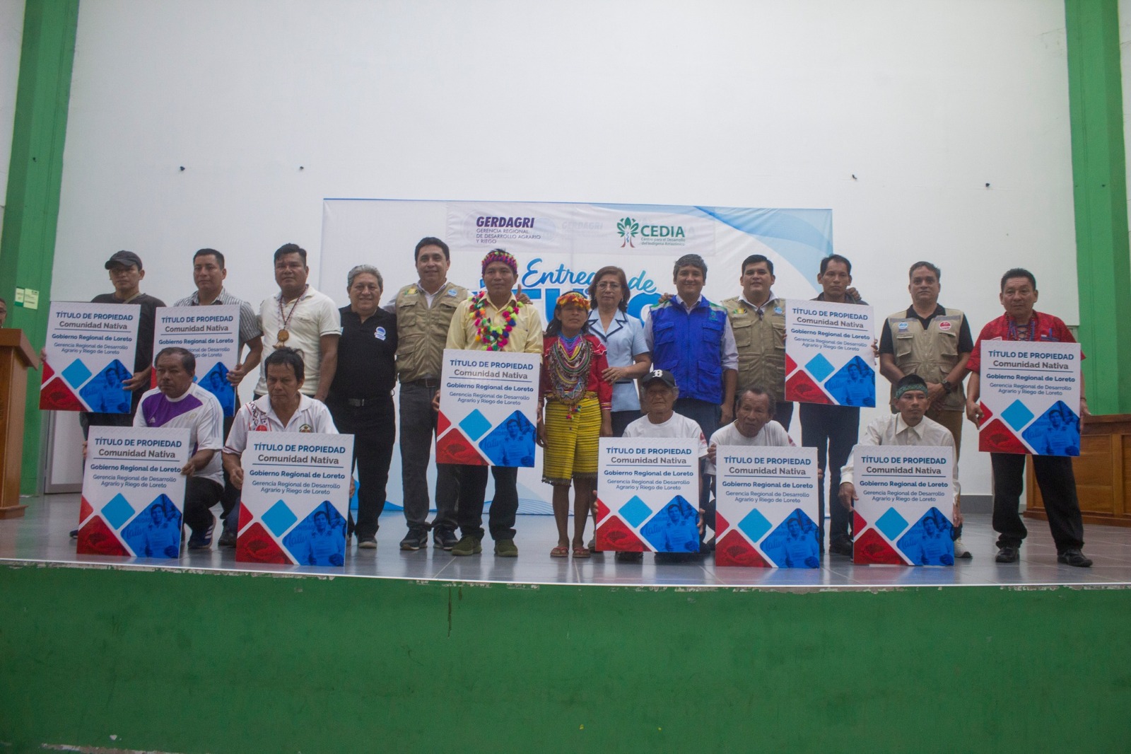 El Gobierno Regional de Loreto (GOREL), a través de la Gerencia Regional de Desarrollo Agrario y Riego (GERDAGRI) y con el respaldo del Centro para el Desarrollo del Indígena Amazónico (CEDIA), entregó ayer en Yurimaguas títulos de propiedad a 15 comunidades nativas y a propietarios de predios rurales individuales en las provincias de Alto Amazonas y Datem del Marañón.