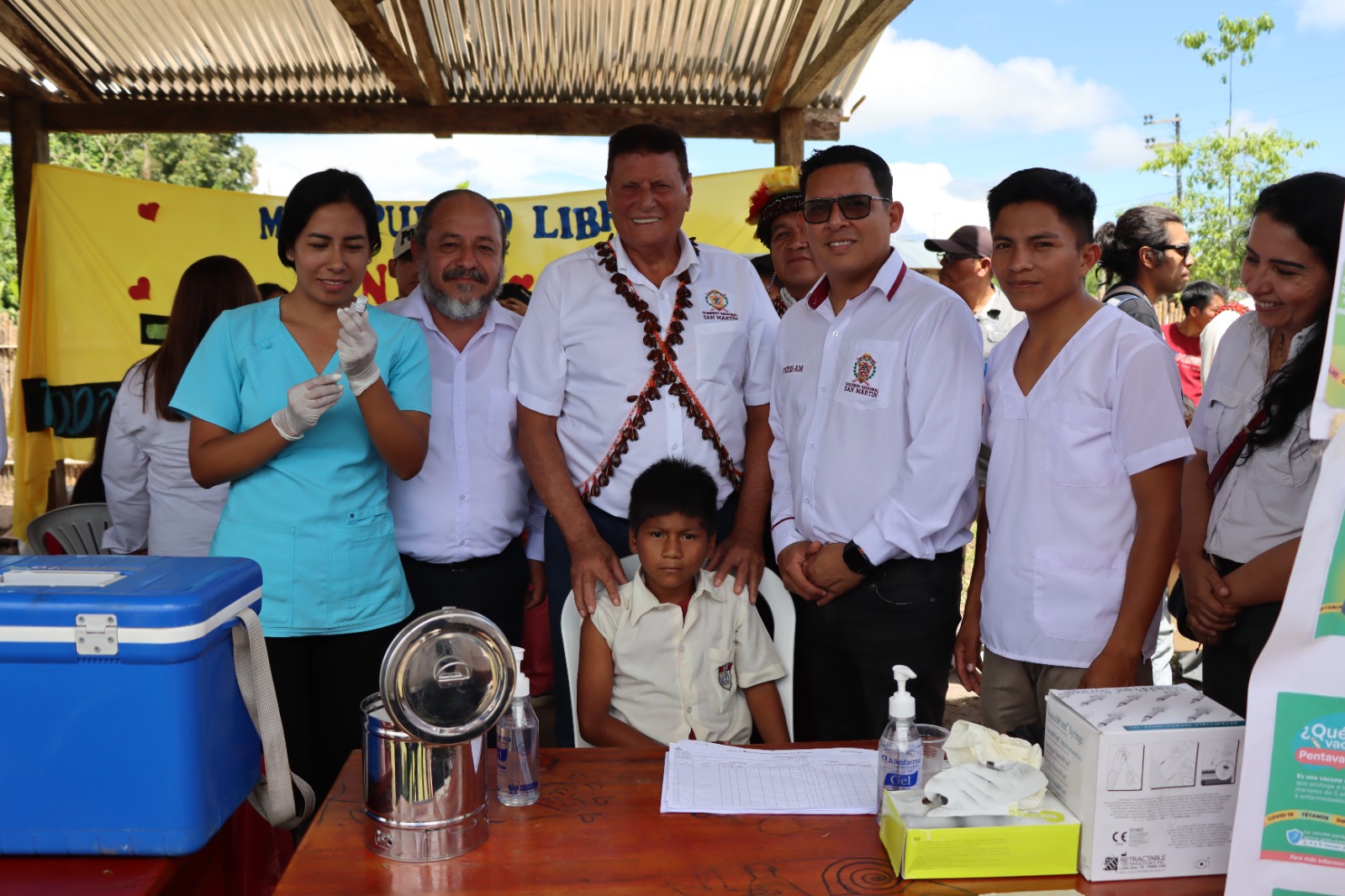 Tras la ceremonia de apertura de la I. E. N. 00652 Centro Rural de Formación en Alternancia (CRFA) EIB- Morroyacu (nivel secundario) presidida por el gobernador Walter Grundel Jiménez, el Gobierno Regional San Martín a través de la Dirección Regional de Salud, desarrolló una feria informativa en marco de la Semana de Vacunación en las Américas (SVA), dirigida a los estudiantes, padres de familia y docentes de la referida institución.