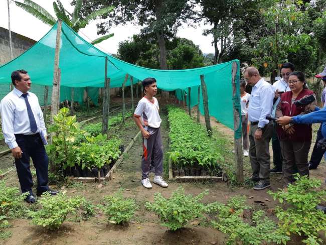 En mérito al esfuerzo y dedicación de los alumnos de la Institución Educativa Juan Miguel Pérez Rengifo, quienes vienen trabajando el cultivo de hortalizas en biohuertos y la producción de árboles maderables en viveros forestales, el gobernador regional de San Martín, Pedro Bogarín Vargas dijo que el gobierno regional llevará los 500 plantones de Caoba del colegio y a cambio les construirá su losa deportiva, con techo, tribuna e iluminación con paneles solares.