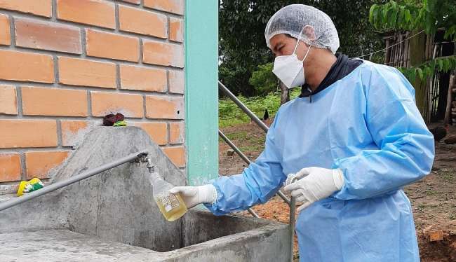 Finalmente, se viene realizando la capacitación al personal de salud en temas relacionados a la vigilancia de la calidad del agua y conjuntamente se desarrolla el monitoreo de parámetros de campo y toma de muestras bacteriológicas y parasitológicas, para de esta manera vigilar la calidad de agua que se destina al consumo de la población.