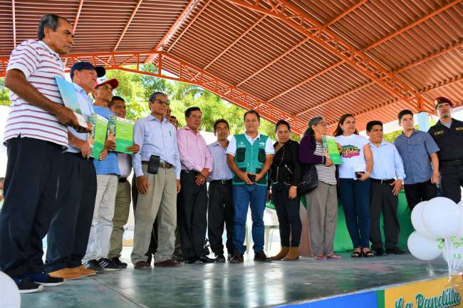 La vicegobernadora regional de San Martín, Nohemí Aguilar Puerta y el director regional de Agricultura, José Revilla Vuelot, entregaron 1 204 títulos de propiedad, que beneficia a 5 mil pobladores.