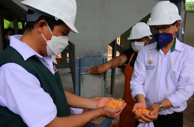 El gobernador regional, Pedro Bogarín y el ministro de Desarrollo Agrario y Riego, Víctor Maita, inauguraron la planta de secado de maíz amarillo duro de la Cooperativa Agropecuaria El Dorado de Maíz, ubicada en la localidad de San José de Sisa, como parte de las actividades que el titular del Midagri viene desarrollando durante su recorrido por los diferentes proyectos productivos de la región San Martín.