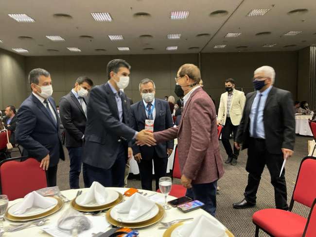 En el Foro Mundial de Bioeconomía, realizado en la ciudad de Belén, capital del estado de Pará, Brasil, el gobernador regional de San Martín, Pedro Bogarín Vargas, sostuvo reuniones con el gobernador del estado sede de este evento internacional, Helder Barbalho y otros gobernadores regionales invitados, con la finalidad de realizar diversas gestiones y discutir el panorama de la bioeconomía en nuestra región. También expuso sobre los adelantos en bioenergía y energía fotovoltaica, así como la ganadería de alto valor genético que se viene obteniendo en nuestra región.