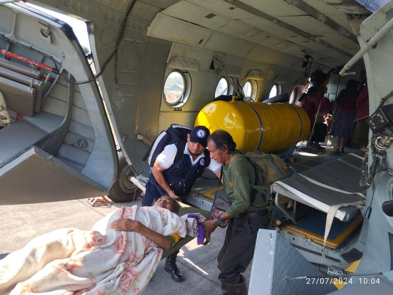 En ese sentido, tras recibir el llamado de emergencia del pamuk de la comunidad Achu, Oscar Achayap Nugkuag, una brigada de salud liderada por el por el titular de la Diresa San Martín, Aldo Pinchi Flores gestionó los requerimientos correspondientes y se trasladó hacia la referida jurisdicción. Los pacientes fueron trasladados en helicóptero con el valioso apoyo de los miembros de la Fuerza Aérea del Perú mediante el Ministerio de Defensa, acompañados de familiares y su líder de la comunidad.