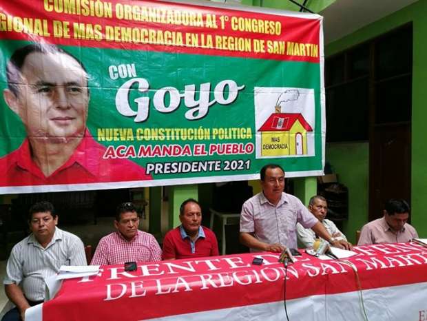 Moyobamba. Como parte de las actividades que tienen por finalidad reorganizar el Partido Político “MAS Democracia”, ayer jueves 29 de junio estuvo en Moyobamba el expresidente Regional de Cajamarca Gregorio Santos Guerrero quien acompañado de conocidos líderes de izquierda y dirigentes de las rondas campesinas inicio su periplo con una conferencia de prensa donde anunció su participación en las próximas elecciones presidenciales.