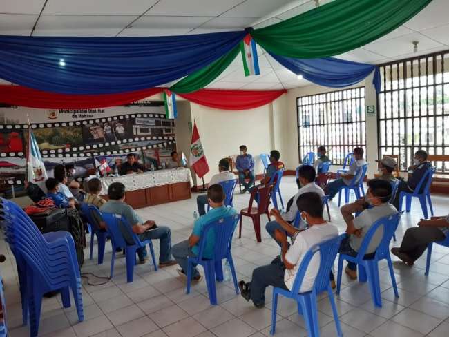 Durante la reunión participaron el juez de paz, representantes de las rondas campesinas y dirigentes de los barrios, caseríos y Centros Poblados quienes se encontraban debidamente implementados con mascarillas y guantes.