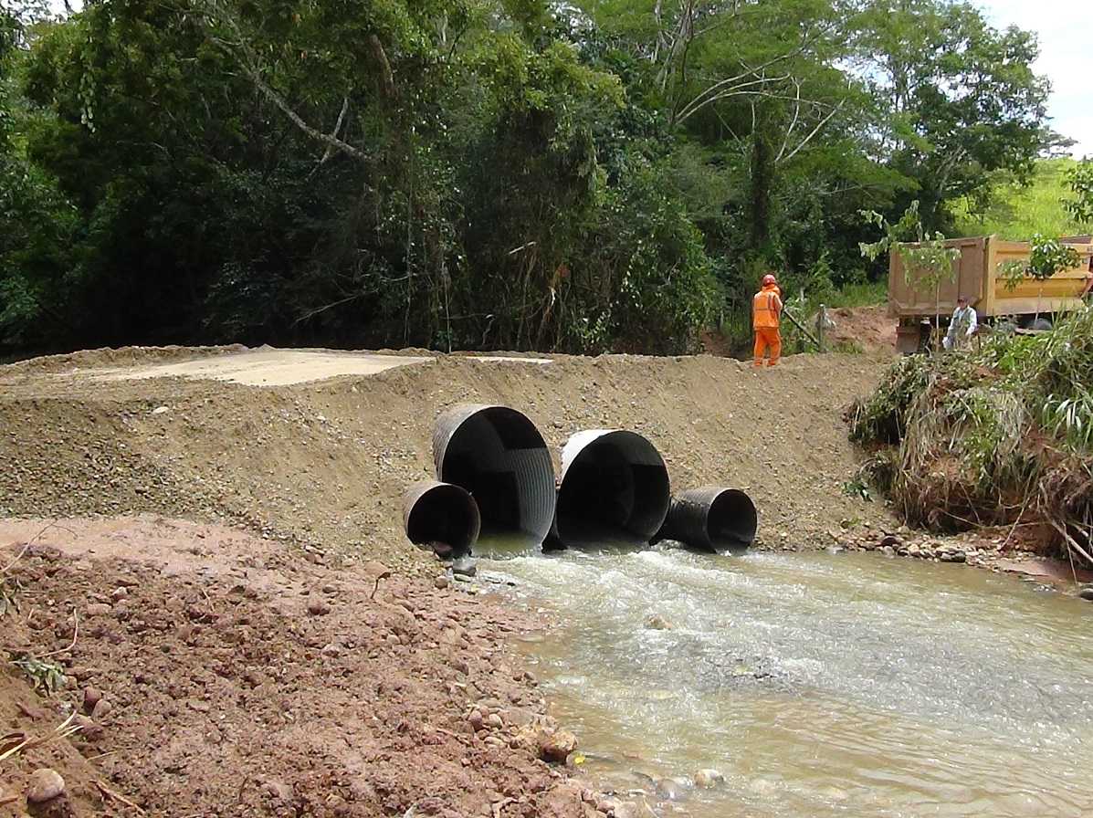 Personal de la Constructora CASA logró culminar en tiempo récord, la construcción de un badén sobre la quebrada Pucayacu, a fin de permitir el tránsito vehicular por el tramo sur de la carretera Fernando Belaúnde Terry, luego que el puente colapsara por exceso de velocidad y sobrecarga de vehículos pesados, ocurrido el sábado por la mañana nueve kilómetros al sur de Tarapoto.