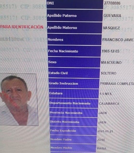 Se trata de Francisco Javier Guevara Vásquez de 57 años natural de Jaén se encuentra internando en una cama de cuidados intensivos del área de COVID 19 del Hospital del Minsa de Moyobamba hace 21 días y hasta la fecha no se ha presentado ningún familiar así lo refirió Freddy Casique Celis, del Colectivo Alto Mayo, se está haciendo de conocimiento a través de los medios de comunicación que, si alguien conoce a sus familiares, darles aviso para que se acerquen hasta el Nosocomio de Moyobamba.