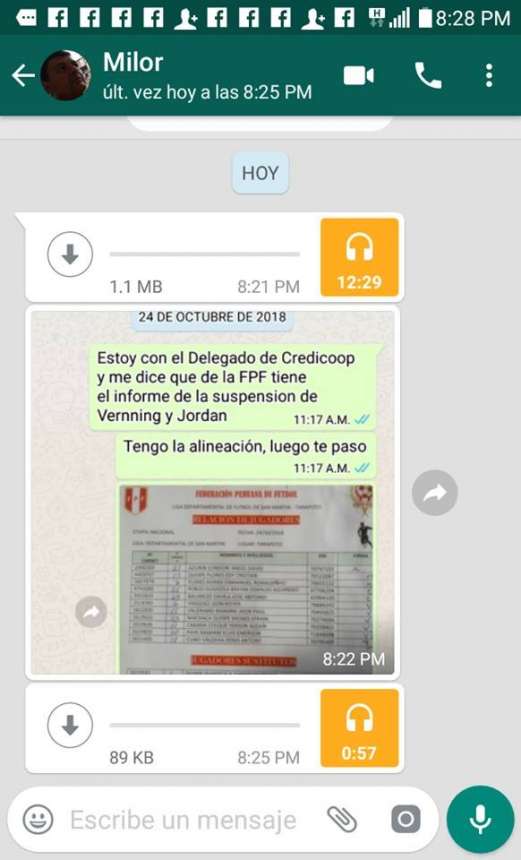 “Los periodista no estamos en la obligación de hacer el control de los jugadores, sobre las tarjetas amarillas ni las tarjetas rojas, para eso hay un delegado; sin embargo al reunirme con el delegado de Credicoop de Juliaca-Puno me dio a conocer que el jugador Verning Sánchez Córdova tiene Tres (3) tarjetas amarillas, asi como también Jordan Vela, y el utilero Jeyson Pinedo; por lo que de inmediato me comuniqué con Tedy Tomás Tuesta Torres para darle a conocer este caso, sin embargo a pesar de haberle comunicado lo pusieron en la planilla de juego a Verning Sánchez.