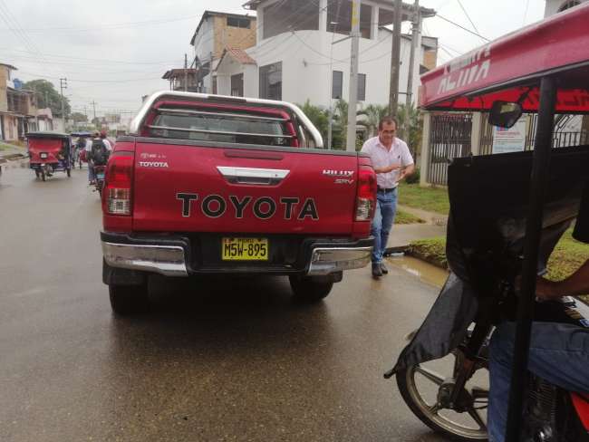 Un mototaxista resultó con un corte en la cabeza tras ser víctima de un accidente de tránsito, en momentos que su trimóvil fue impactado por la parte posterior por una camioneta que era conducida por el excandidato al Congreso de la República César Romero. Varias personas que pasaban por el lugar auxiliaron al herido y lo trasladaron de emergencia al Hospital Regional de Tarapoto.