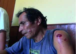Por su parte Anmelio Alberca Ordoñez, recibió un impacto de cartucho de gas lacrimógeno en el tobillo, al ser atendió en el hospital de San José de Sisa señaló que solo llegó al campamento de la empresa CASA en busca de trabajo. Hasta la gobernación de San José de Sisa, llegaron los dirigentes de Construcción Civil, para solicitar apoyo de la autoridad política para saber la relación de personas detenidas. (Hugo Anteparra)