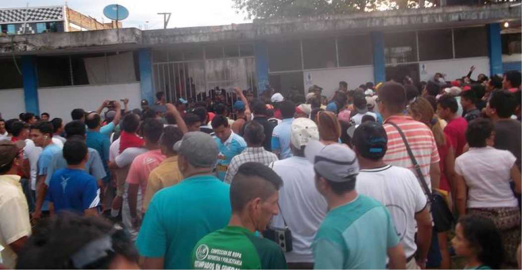 Unión Tarapoto terminó arrimado por sus propios hinchas en los camerinos del estadio Carlos Vidaurre García tras el mal resultado obtenido la tarde de ayer a manos de los Caimanes del cual fueron presa fácil al quedar derrotados por 3 goles 1 en un partido deslucido para las huestes locales. El cuadro ´verdolaga´ no atina a nada y el público se da cuenta, además del reflejo en los malos resultados, tanto de local, como de visita, muchos de los que asistieron a ver el partido ayer fueron a darle el respaldo al equipo del pueblo, pero terminaron decepcionados una vez más, los jugadores que tiene el equipo no hacen nada para contribuir. Un equipo unionista que está en pañales, con un medio campo improductivo, poco prolijo en el manejo del balón y sin mayores criterios para resolver, salvo excepciones como el caso de Aivar y uno más por ahí, en la defensa el equipo flojo, y la delantera sin mayores opciones se pierde ante el rival. El primer tiempo terminó con 1 gol a favor deUnión, sin embargo en el segundo periodo cuando todos pensaban que apretaría el gatillo para liquidar definitivamente el partido llegarían los goles para los Caimanes, terminado el match con 3 a 1 para los costeños. El público que estaba afligido en la graderías no se aguantó y apenas se dio este resultado comenzó a abandonar las graderías, a los 90´, los hinchas arrinconaron a los unionistas en los camerinos entre gritos exigiendo mejores resultados y sobre todo la salida el técnico Reyes a quien dan como culpable de todo este momento en el equipo unionista, además del gerente deportivo a quien buscaban por todos lados.