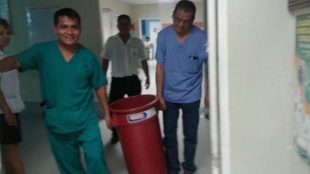 o desabastecimiento de agua potable, en fotografías difundidas en las redes sociales se puede observar cuando los médicos apoyan en trasladar a sus consultorios depósitos con agua, situación que ocasionó que algunas intervenciones quirúrgicas sean postergadas.