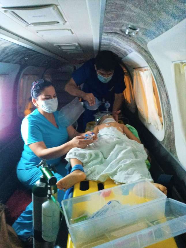 La dirección general, equipo asistencial y el equipo de referencia y contra referencias del hospital II-2 de Tarapoto, en coordinación con el Ministerio de Salud (Minsa), lograron evacuar a una niña de 3 años desde Tarapoto hasta Lima, gracias a una ambulancia área (vuelo chárter de la aerolínea Saeta).