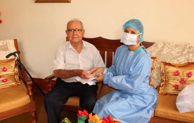 De igual manera se realizó la entrega de medicamentos a los adultos mayores y pacientes con enfermedades crónicas como: hipertensos y diabéticos, a cargo de la Lic. Gady Nuñez, priorizando las entregas domiciliarias para que adultos mayores y pacientes con enfermedades crónicas, teniendo en cuenta que ellos son la parte de la población más vulnerable y propensos a que sean contagiados del COVID – 19, que a la fecha suman 140 casos de esta enfermedad en el Perú.