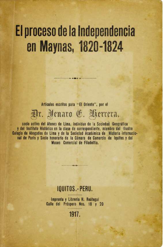 Te invitamos a conocer el Acta de Proclamación de Independencia de Maynas, extraída del libro El proceso de la Independencia de Maynas, 1820-1824, publicado por Jenaro Herrera en 1917.