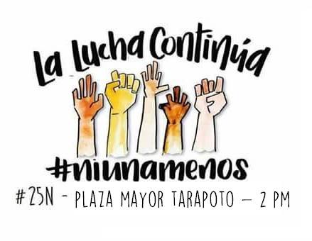 Tarapoto. Hoy a partir de las 2:00 de la tarde se inicia la concentración para la marcha “niunamenos”, en el marco del 25 de noviembre, Día Internacional de la Eliminación de la Violencia contra la Mujer.
