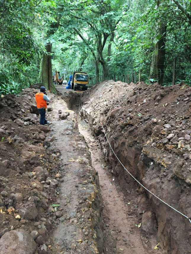Recién ayer miércoles 5 de septiembre, tras varias semanas de insistencia, la municipalidad entregó a los interesados el expediente técnico donde se lee que estaba proyectada la ejecución de una zanja de 75 cm de ancho, mas no de 2 metros. Estaba proyectado un cavado manual para no causar daño ambiental y así mismo generar puestos de empleo. Sin embargo, se hizo el cavado con maquinaria pesada y el material de sobra quedó acumulado en la franja marginal y en propiedades de vecinos, malogrando vegetación y cercos perimétricos.